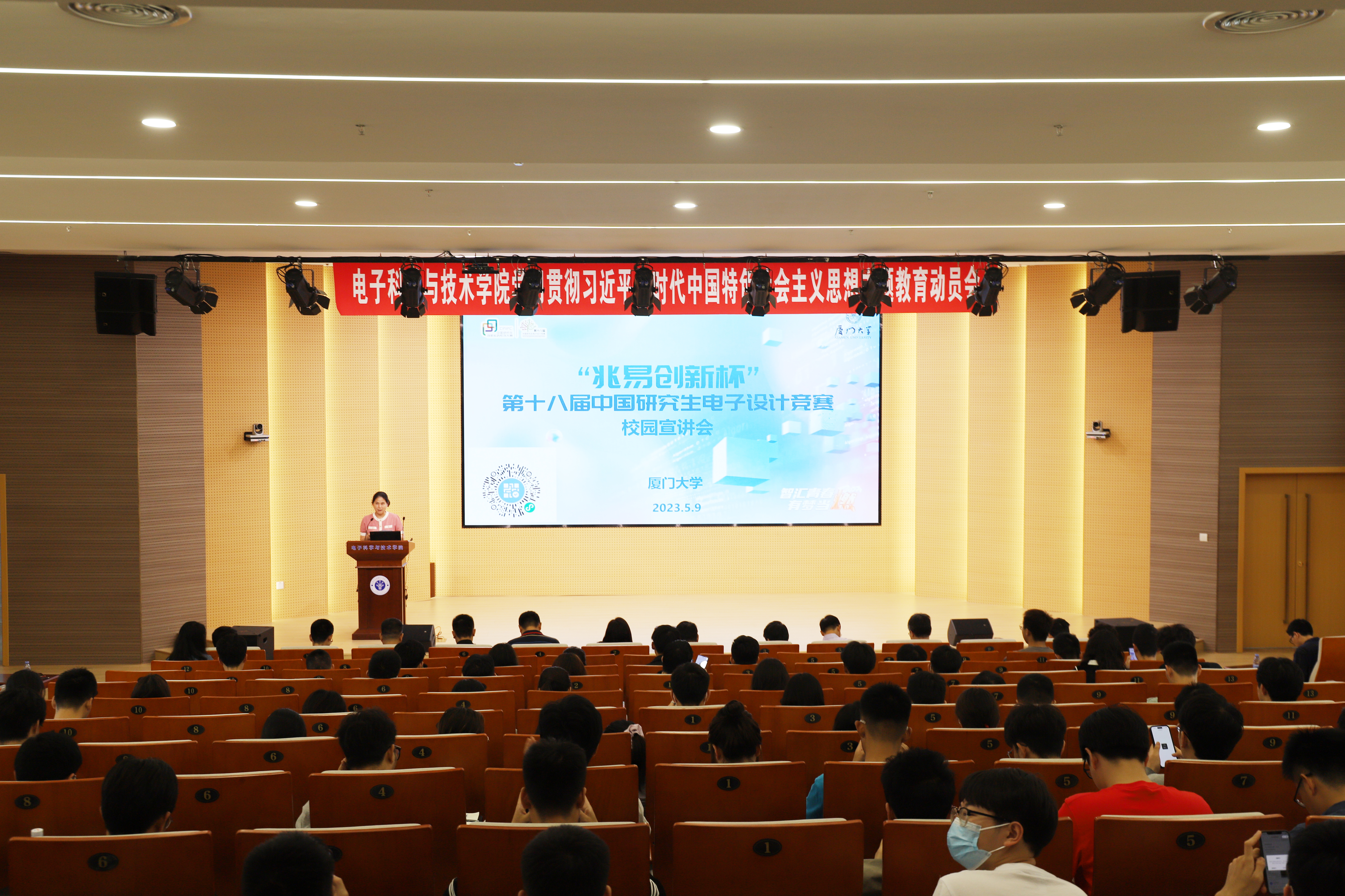 为学习贯彻党的二十大精神,落实主题教育“学思想、强党性、重实践、建新功”总要求,深入推进研究生创新实践教育,提升研究生创新实践能力,5月9日下午,我院在翔安校区南存钿楼C座报告厅开展了第十八届中国研究生电子设计竞赛校园宣讲活动。