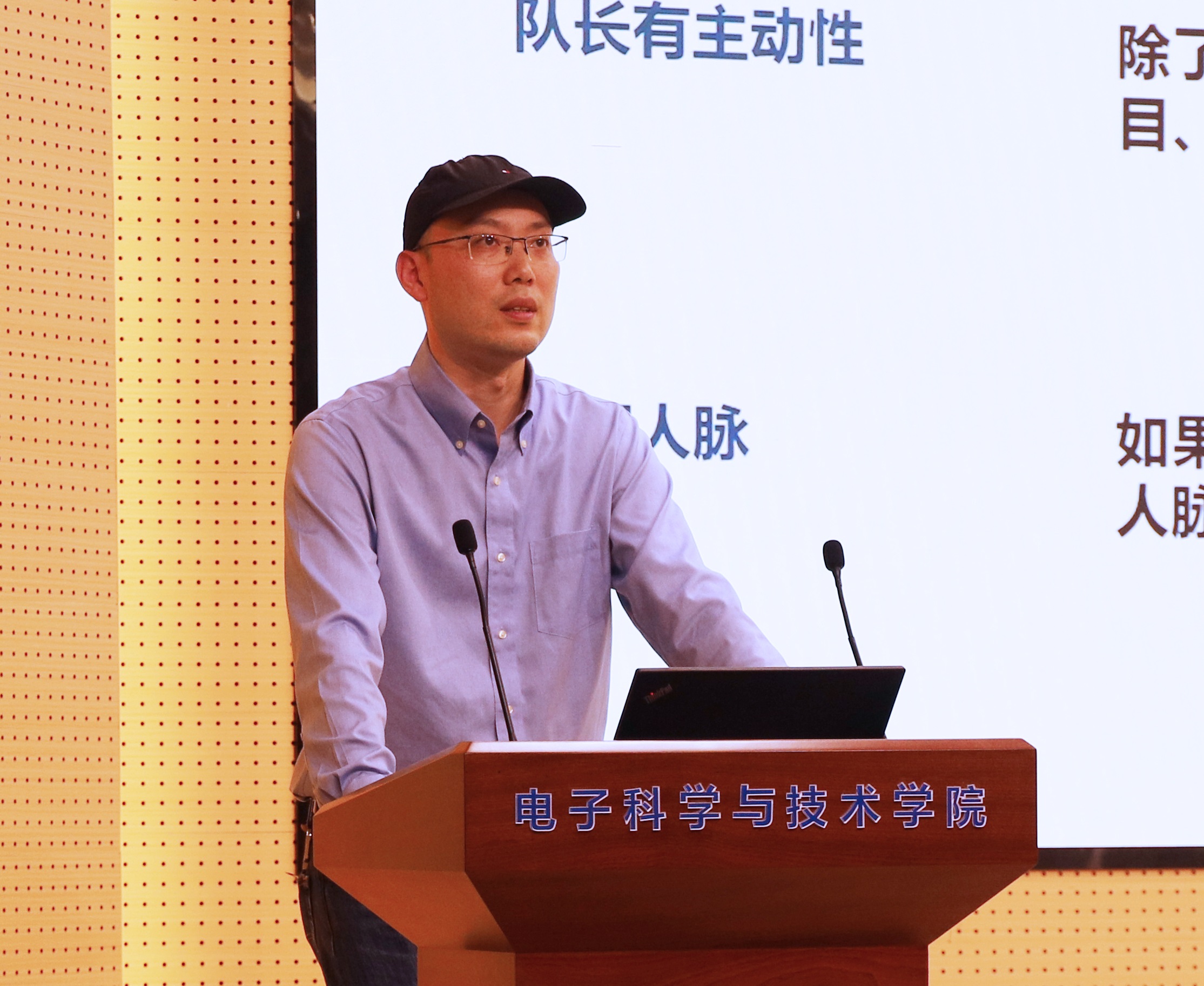 上一届大赛优秀指导老师吴挺竹从指导竞赛项目的角度分享了参赛经验。他认为指导教师最重要的应该做好前期准备工作,从赛道选择、题目确定方面给予学生指导;要合理的分配任务,做到因材施教,让每位同学能在其中发挥自己的特长,在竞赛中能够得到成长。