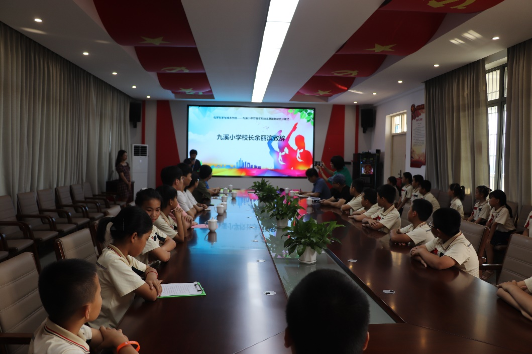 余丽滨感谢电子科学与技术学院对九溪小学创客社团的大力支持。她表示,成立创客社团是九溪小学增强学生创新意识与实践能力、活跃校园文化、促进素质教育全面发展的重要举措。她激励同学们在电子学院大学生志愿者的带领下,训练发散思维,提升动手能力,在未来取得更大的进步。