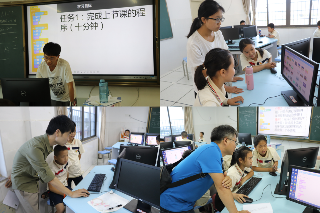 简短的开幕式后,芯青年小课堂开讲了。志愿者详细讲解了如何通过编程来制作动画人物,并让人物活动起来。在志愿者的指导下,同学们动手操作,很快就掌握了窍门,顺利完成任务。