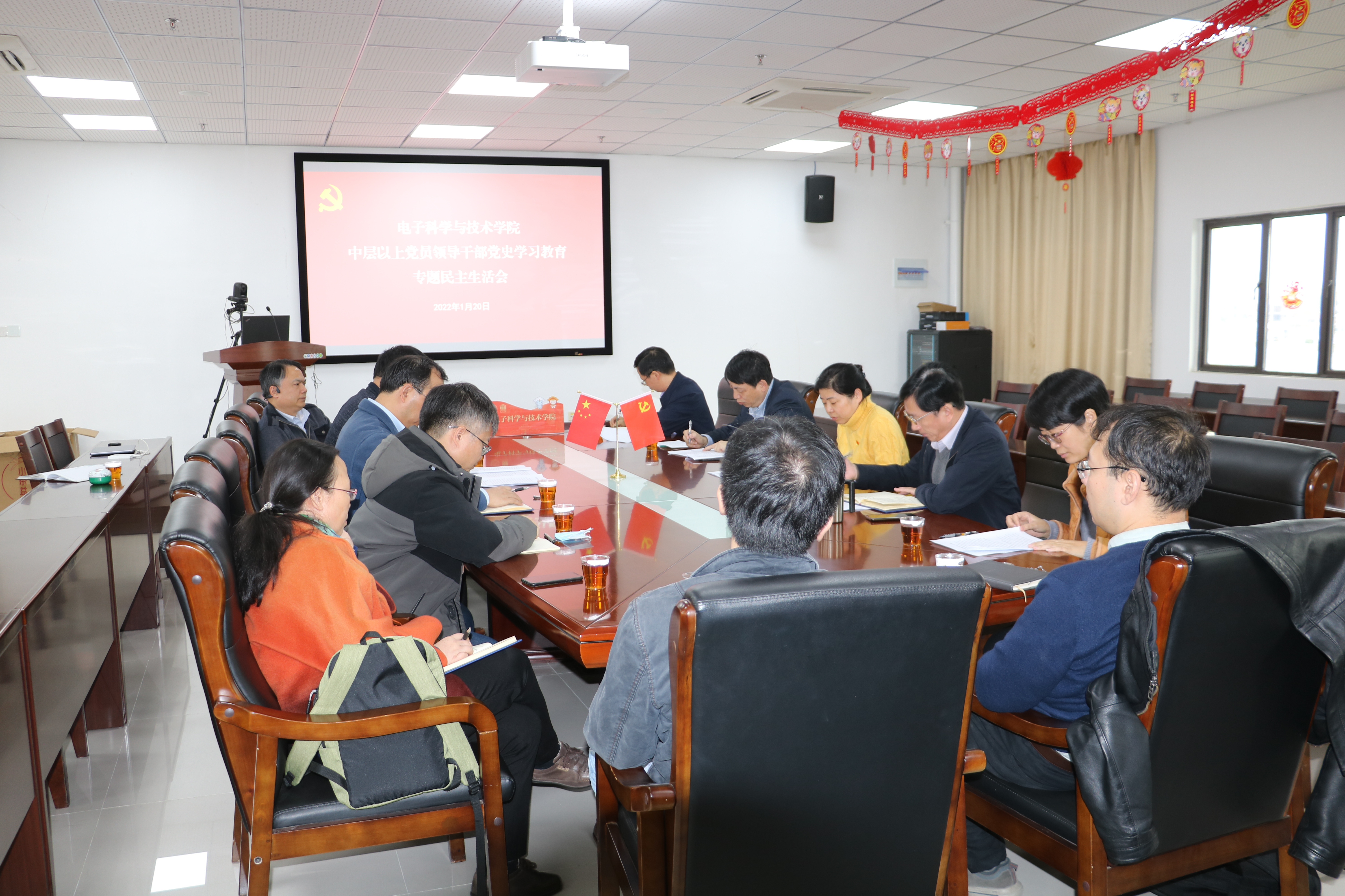 根据校党委部署要求,经校党史学习教育第七督导组审核同意,1月20日下午,电子科学与技术学院党委在南存钿楼513会议室召开党史学习教育专题民主生活会。校党史学习教育第七督导组组长洪永强指导,院党委书记吴国瑛主持会议,院领导班子参加会议,院工会主席、各系级单位负责人列席会议。