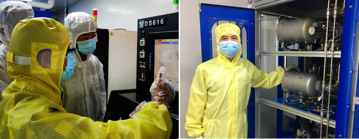支部党员钟毅、许荣彬等老师在平台洁净室给厦门理工学院学生培训
