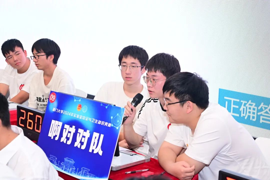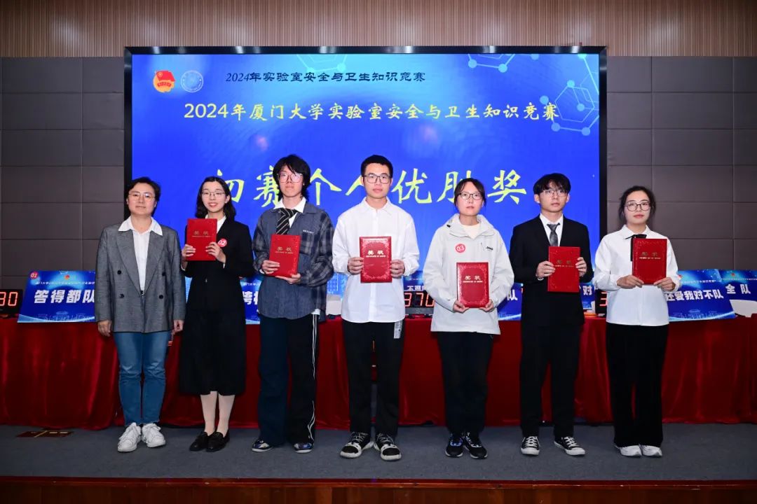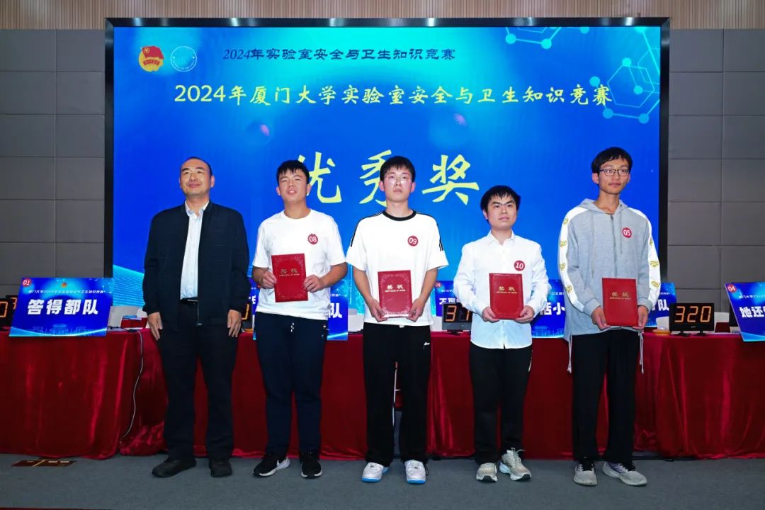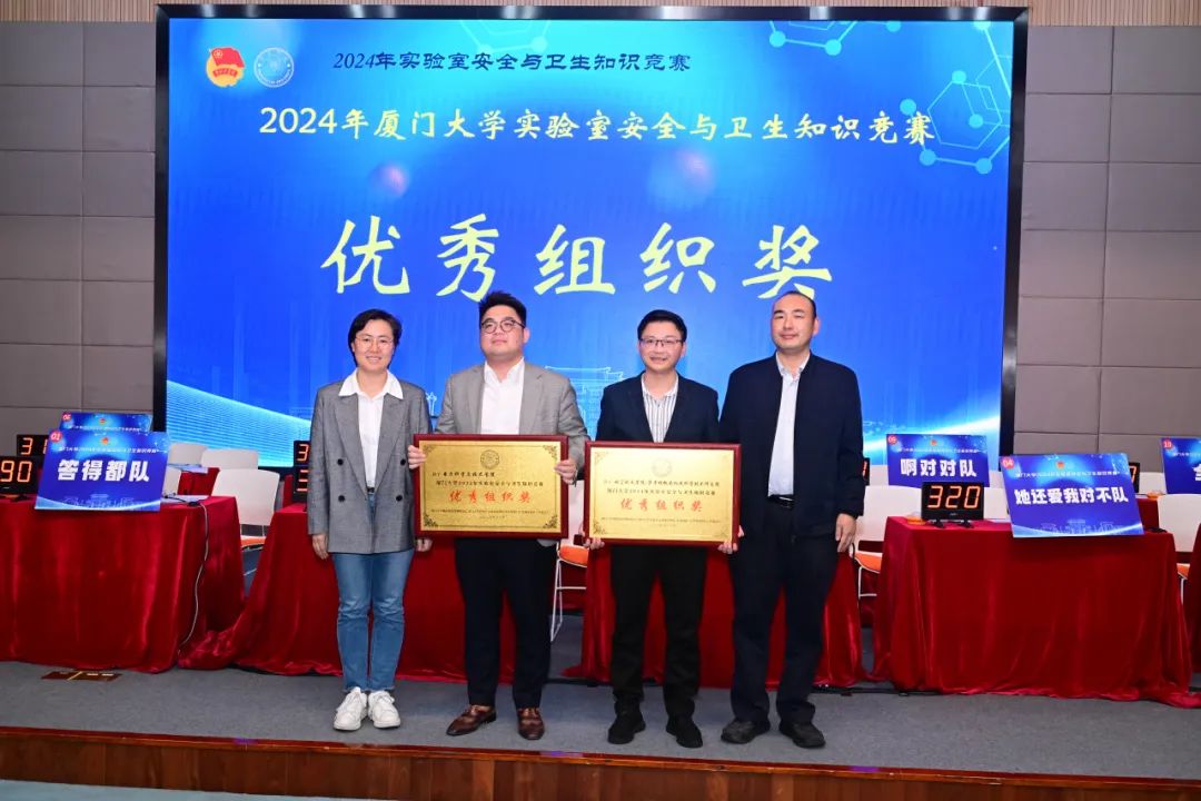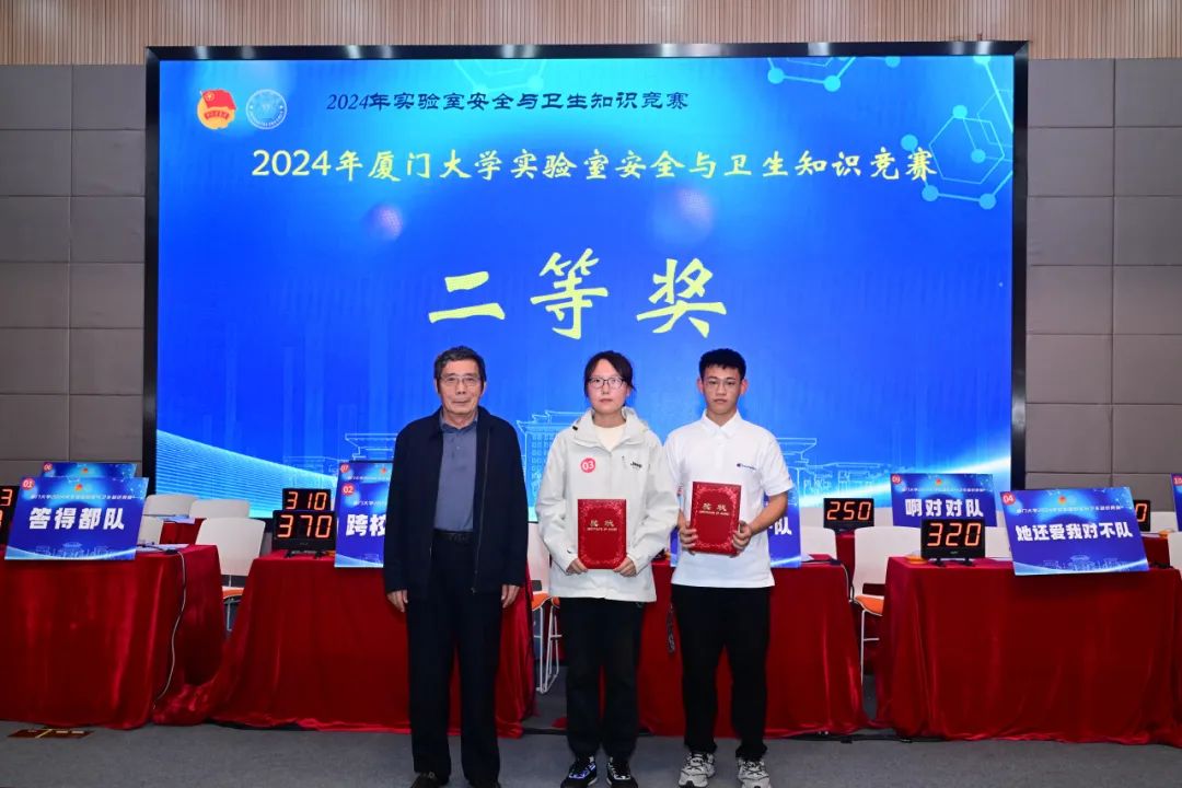 12月4日晚,“安全引领科研路,点亮探索新灯塔”厦门大学2024年实验室安全与卫生知识竞赛决赛在翔安校区德旺图书馆二号报告厅顺利举行。学院两支队伍从三百余人的初赛队伍中脱颖而出,闯进决赛。经过激烈的角逐,好好干活小队最终荣获二等奖,啊对对队荣获优秀奖,叶琳郁荣获初赛个人优胜奖,学院荣获优秀组织奖。