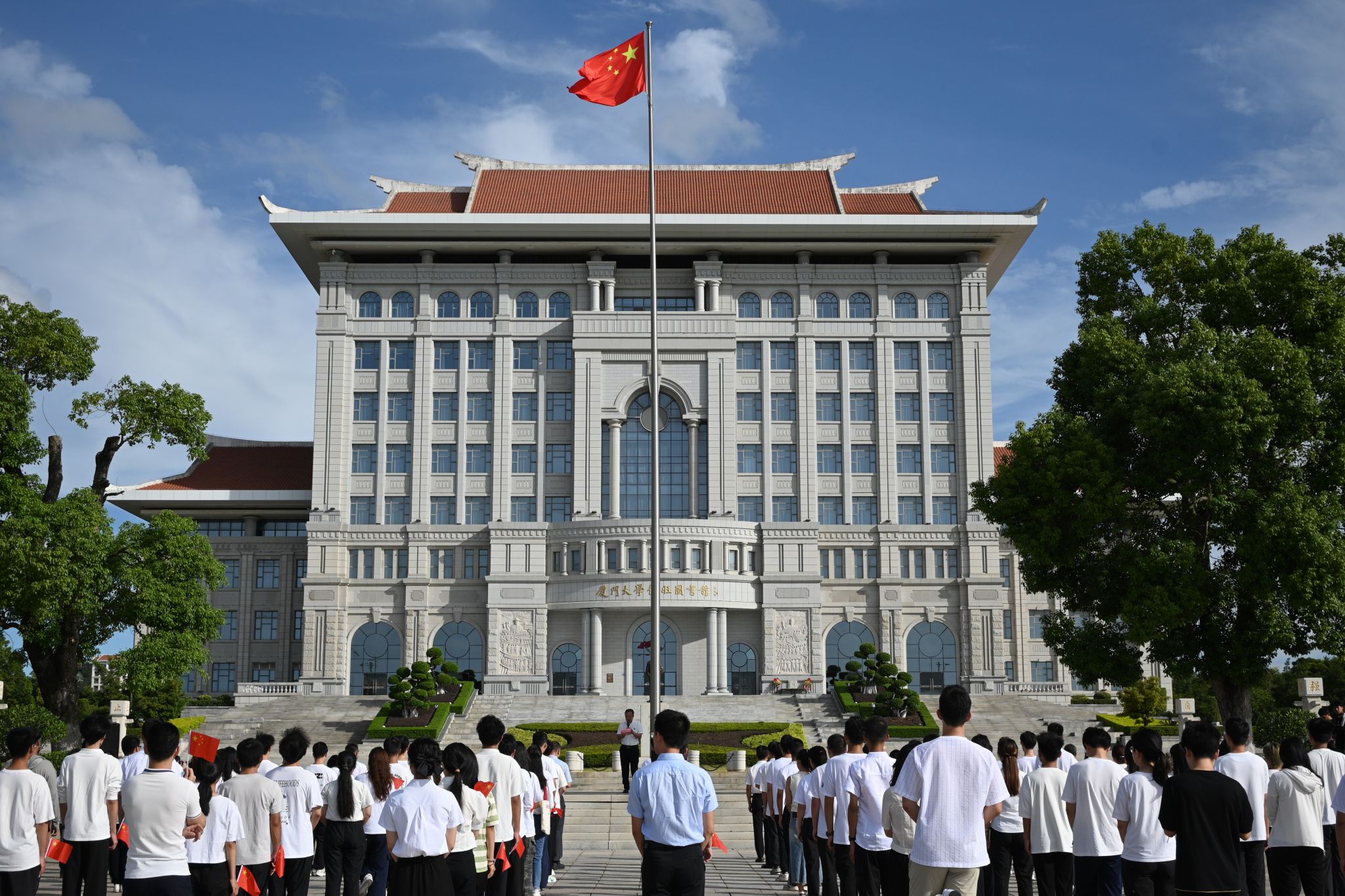 在翔安校区,校长助理、翔安校区管委会主任陈光参加仪式。翔安校区管委会副主任刘俊杰主持仪式。伴随着雄壮的《义勇军进行曲》,鲜艳的五星红旗冉冉升起。在迎风飞扬的国旗下,校区师生朗诵了《挺膺担当 强国有我》,展现校区师生开拓进取、干事创业的豪情。