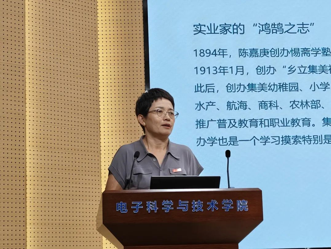 “对于每一个厦大人而言,学习和了解先辈们与厦门大学的故事,是反观个人成长与大学使命关系的重要契机,是理解和体会‘小我’与‘大我’区别的深度机遇,是寻找和挖掘自我成长内驱力的重要支点。”9月30日下午,翔安校区南存钿楼C栋报告厅气氛热烈,不时响起阵阵掌声。学院党委书记石慧霞以《陈嘉庚与百年厦大——兼谈厦大电子人的家国情怀》为题面向我院芯青年讲授新学期的第一堂思政课。活动由学院党委副书记林蕊主持,学院600余名本科生线上线下共同学习。