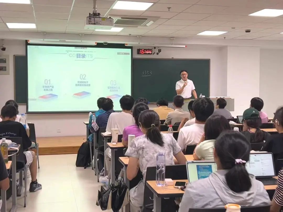 李虹以其深厚的行业背景和敏锐的市场洞察力,带领同学们穿越了集成电路产业发展的历史长河,剖析了当前行业的现状,展望了未来的发展趋势。他分享了华润微电子在半导体技术研发及经营管理上的宝贵经验,以及公司在重庆和无锡两地的成功案例,讲述了企业是如何通过科技创新与管理优化,最终实现了扭亏为盈。
