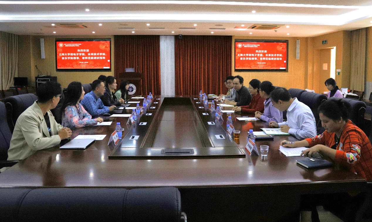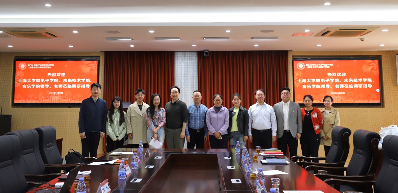 2024年11月26日上午,上海大学微电子学院、未来技术学院和音乐学院一行来我院调研学习,双方就党建引领、思政建设、美育工作和人才培育等方面进行深入交流探讨。上海大学微电子学院党委副书记、副院长袁铭,未来技术学院党委副书记、副院长钱文馨,音乐学院党委副书记、副院长曹茜,厦门大学美育与通识教育中心副主任兼教务处副处长黄艳萍,学院党委书记石慧霞,学院副院长李澄以及学院党委副书记韩海雄等出席调研座谈会现场。参加活动的还有双方团委、辅导员代表。座谈会由韩海雄主持。