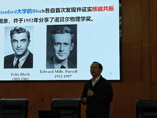 在武穴中学和黄梅一中的授牌活动中,沈桂平教授还为两所中学的高一年级同学作题为“神奇的核磁共振:如何一窥人体内部世界?”的学科讲座,为同学们介绍了核磁共振技术的起源发展以及核磁共振成像的原理,介绍了该技术在医学检测中的应用及最新进展,鼓励同学们努力学习,进入心仪大学深造,为我国科学技术的发展贡献力量。