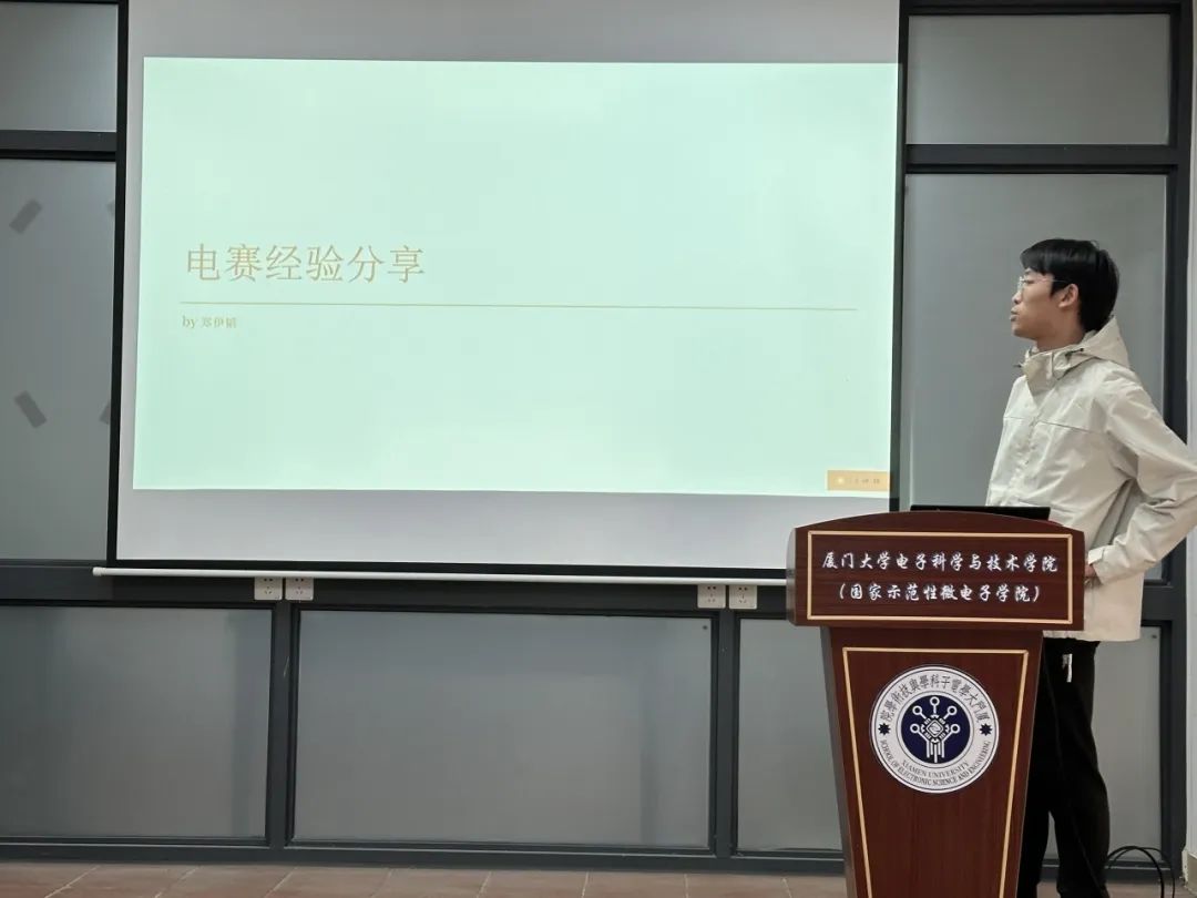 2022级电子信息工程专业郑伊韬介绍了全国大学生电子设计竞赛的基本信息与题型设置。他认为多参加比赛可以积累经验,了解自身不足,明确未来努力方向。参赛者应具备扎实的电子设计基础、软硬件开发能力以及良好的团队合作精神。他强调,在队友选择方面要选择技术互补、态度积极的队友,在比赛过程中,保持良好的沟通与协作,彼此信任,相辅相成,共同解决问题。