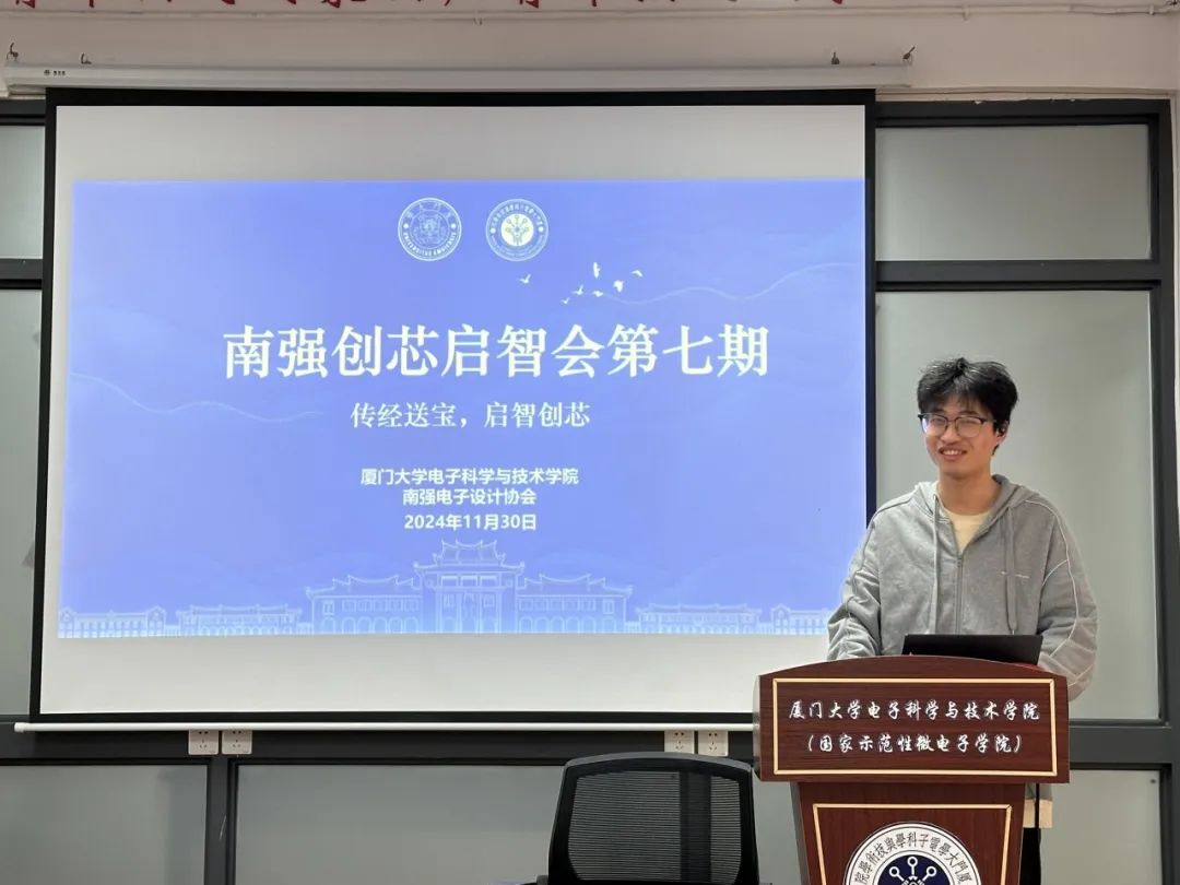 为促进同学们深入了解、熟悉电子学科各类科创竞赛基本情况,帮助同学们掌握各大竞赛的主要流程、内容、要求等,助力同学们明确目标、提早准备,争取佳绩,11月30日,南强创芯启智会第七期经验分享会在博学二“一站式”创芯空间顺利举办。三位学长学姐获奖代表为芯青年们分享了自己参加比赛的丰富心得和经验建议。活动由南强电子设计协会负责人邱盛强主持。