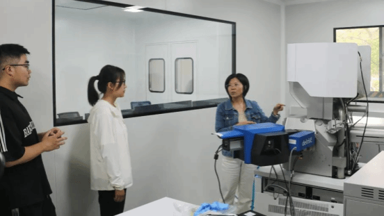 在老师的带领下,同学们依次参观了核磁共振波谱和成像实验室和聚焦离子束扫描电镜与先进光电子检测实验室,了解各类核磁共振仪器的工作原理及其在多学科领域的交叉应用,实景体验高真空环境下纳米精度材料的加工技术和半导体芯片的精细加工过程。