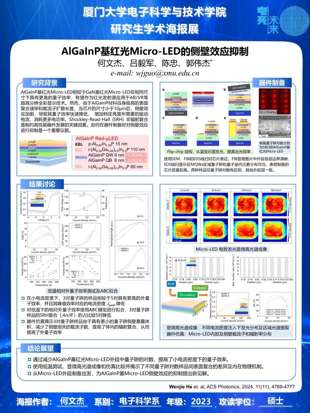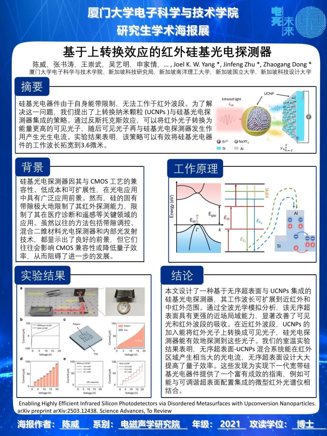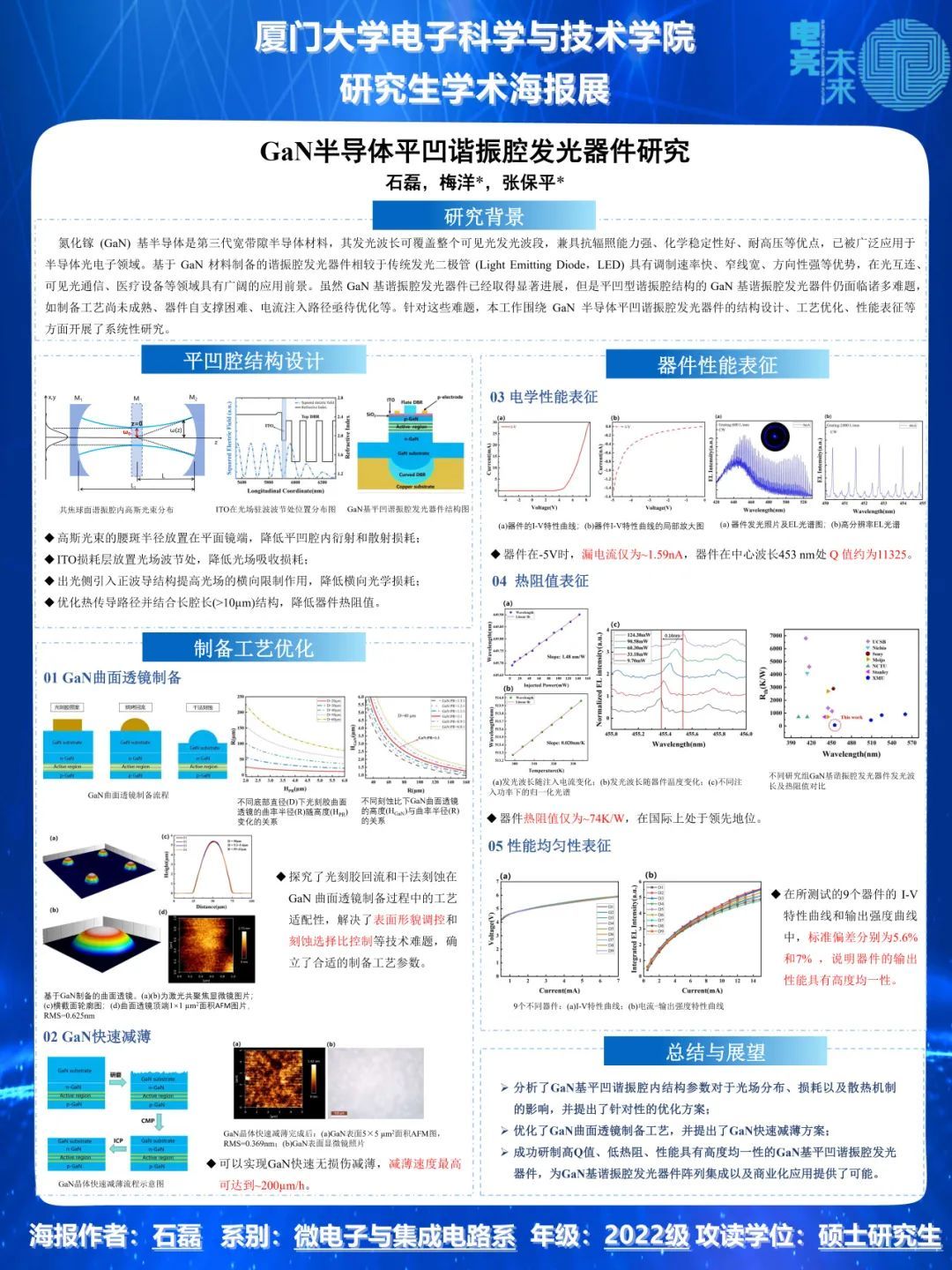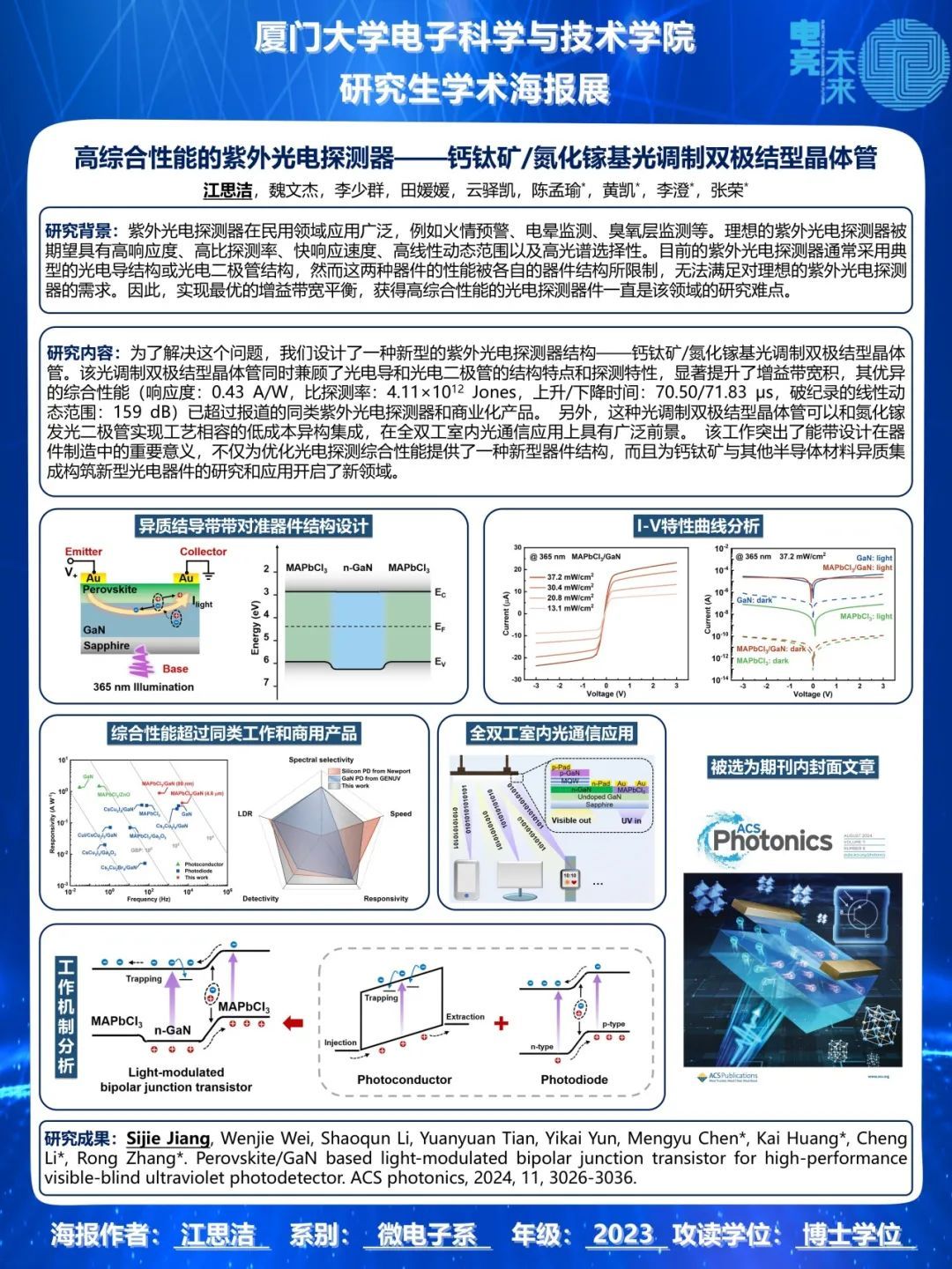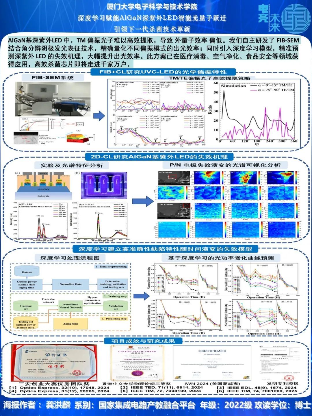 本次学术海报展项目涵盖芯片设计与制造、微纳加工与器件、半导体材料与物理、光电子技术与应用、信息处理与通信等多个前沿领域。参展硕博研究生们精心制作的海报格式规范、内容清晰,充分展示了他们在科研道路上的探索与成果。海报上的每一个数据、每一张图表、每一段文字,都凝聚着同学们的心血和智慧,也体现了他们在各自研究领域的深入思考和创新实践。