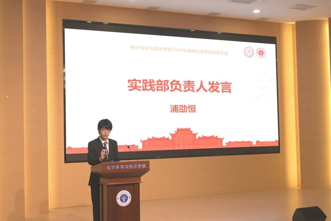 浦劭恒汇报学院暑期社会实践准备情况。他表明,学院“八闽之芯”暑期社会实践队将以“红色教育、蓝色科技、绿色综合”三维课程体系开启新征程。学院严格把控课程质量与宣传内容,通过全媒体平台传播实践风采,确保实践教育实效。期待队员们以青春践行“强国有我”使命,在知行合一中彰显电子学子担当。