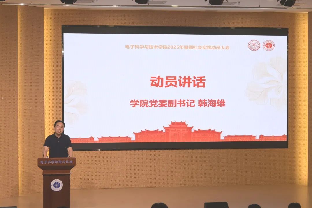 韩海雄作动员大会讲话。他表示,要牢记习近平总书记关于“青年要上好与现实结合的大思政课”的深切寄语,在社会实践中明晰生涯发展方向,实现个人理想与国家发展的同频共振。他对同学们提出三点期望:一是知行合一,学以致用。在实践学习中增长才干、练就本领,将专业知识用于实际。二是勇于担当,服务社会。将青春融入国家战略需要,勇于承担时代使命。三是锤炼品格,厚植情怀。做经得起时代检验的芯青年,将个人理想与国家人民相联系,在奋斗中实现人生价值。他希望芯青年们珍惜实践机会,在基层历练中增长才干,在服务社会中彰显担当,并预祝实践活动圆满成功!