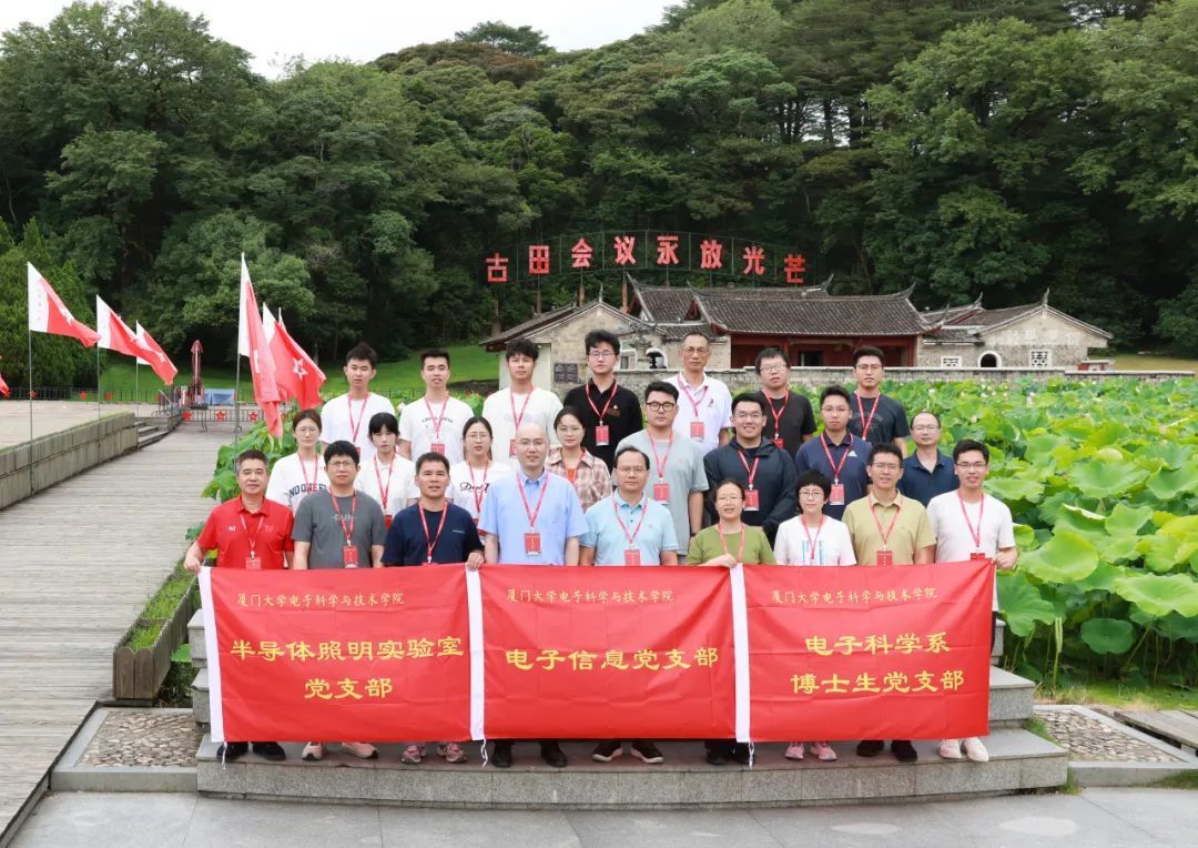 为深入学习贯彻习近平新时代中国特色社会主义思想,弘扬古田会议精神,坚定科技报国理想信念,7月19日至20日,厦门大学电子科学与技术学院电子信息党支部、半导体照明实验室党支部及电子科学系博士生党支部联合开展“弘扬古田会议精神,坚定理想信念”主题党日联学共建活动,师生党员一行赴革命圣地龙岩古田实地研学,以红色信仰为科研赋能,以调查实践为创新铸基,推动党建与学科发展深度融合。
