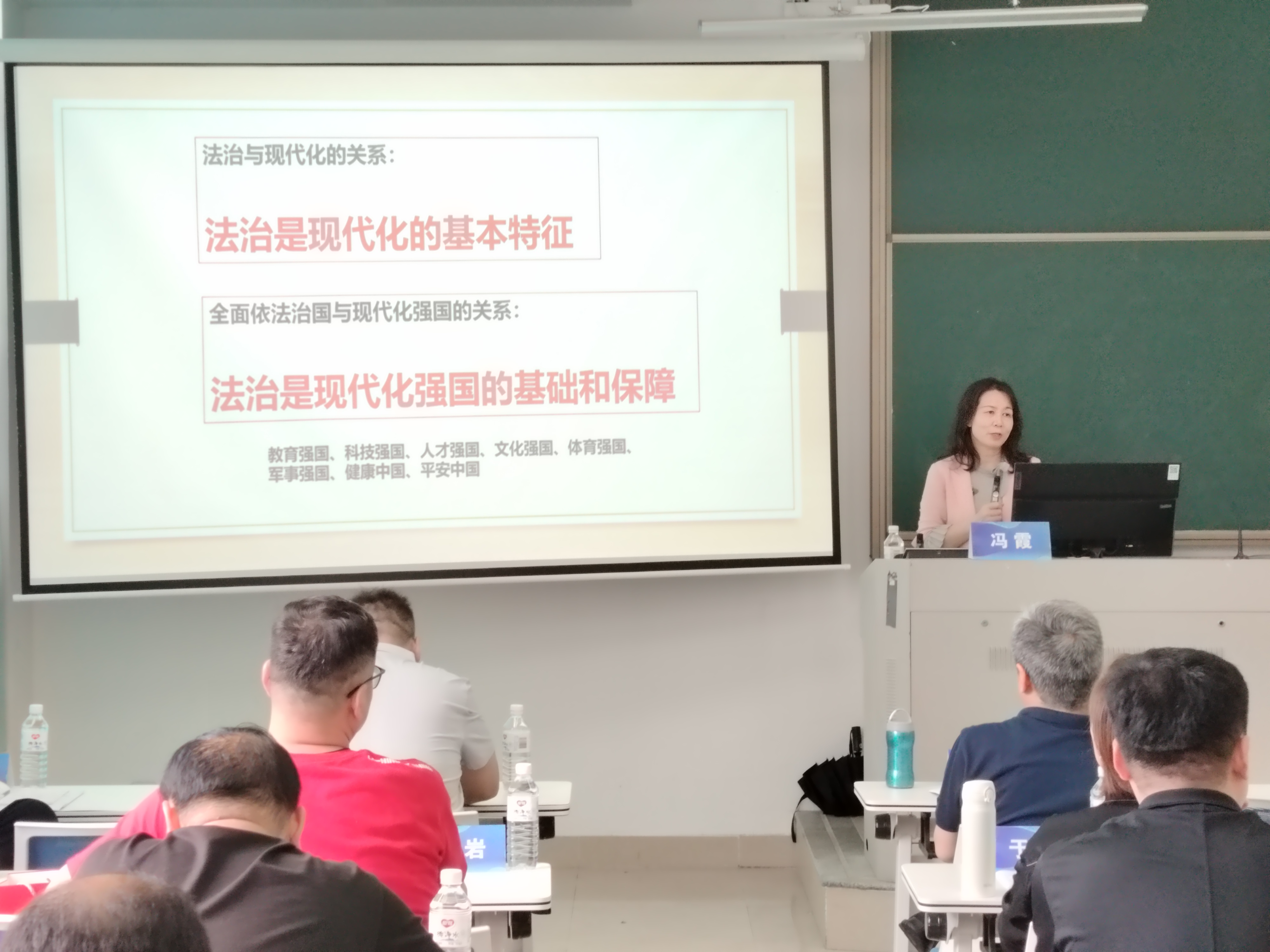 4月23日下午,厦门大学马克思主义学院冯霞教授带来《习近平法治思想》专题讲座。冯霞通过对习近平新时代中国特色社会主义思想体系的深入剖析,引出法治与现代化的关系和全面依法治国和现代化强国的关系。指出法治是现代化的基本特征及法治是现代化强国的基础和保障,还提到新时代新征程创新和深化全面依法治国实践是如何积极推进国家治理现代化的。冯霞通过其深厚的知识底蕴和贴切的案例分析,为学员深入学习习近平法治思想提供了参考和帮助。