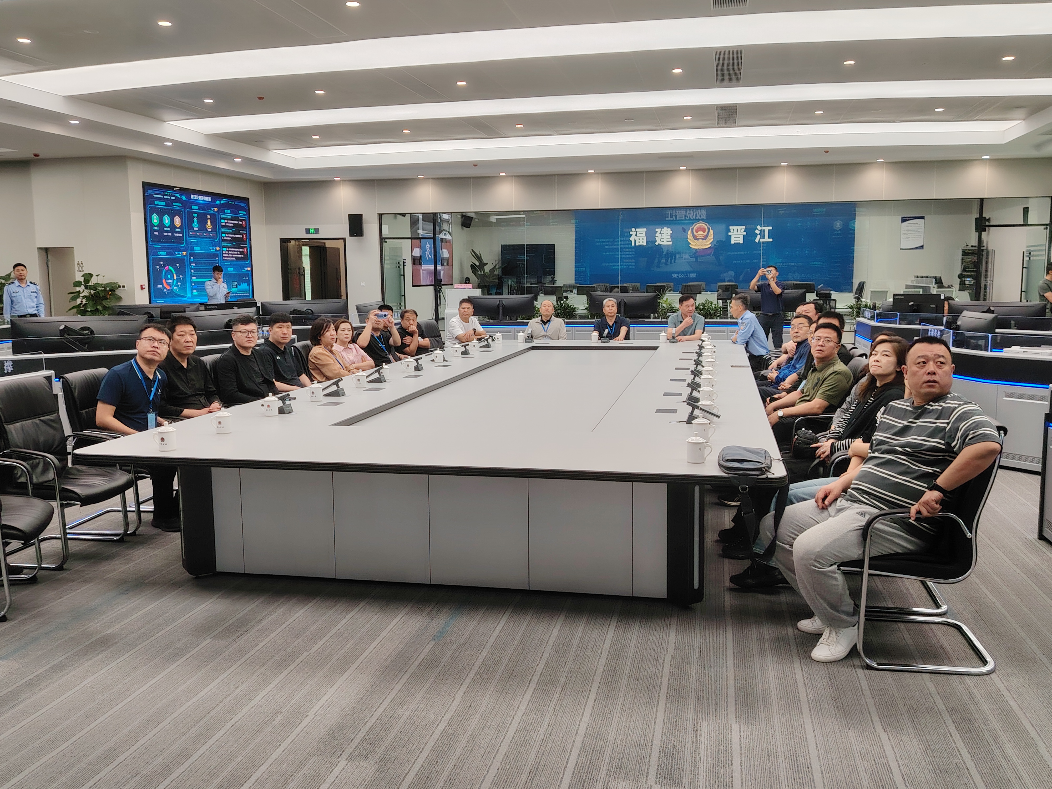 示范班来到了晋江市社会治理现代化指挥中心。中心主动融入智慧城市建设,升级扩容智能管控平台,搭建指挥体系、交通安保、治安态势、要素管控等通用场景,为提高城市安全社会治理效率提供了坚实的保障。